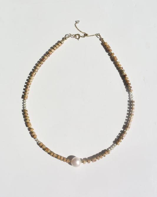 14KGF〈Earthing beads Necklace〉Picture Jasper × Fresh water pearl
