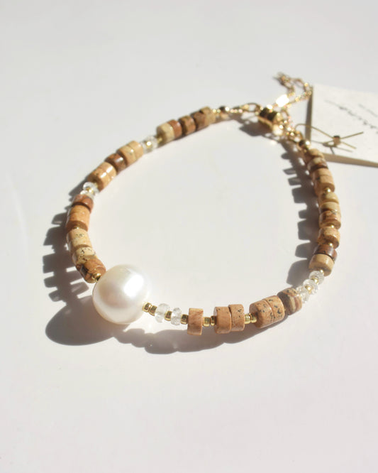 14KGF〈Magnet Bracelet〉 Picture jasper×Fresh water pearl