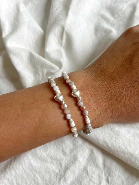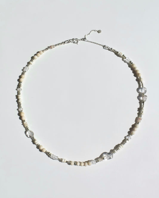Silver〈Earhing beads Necklace〉 Magnesite×Heart
