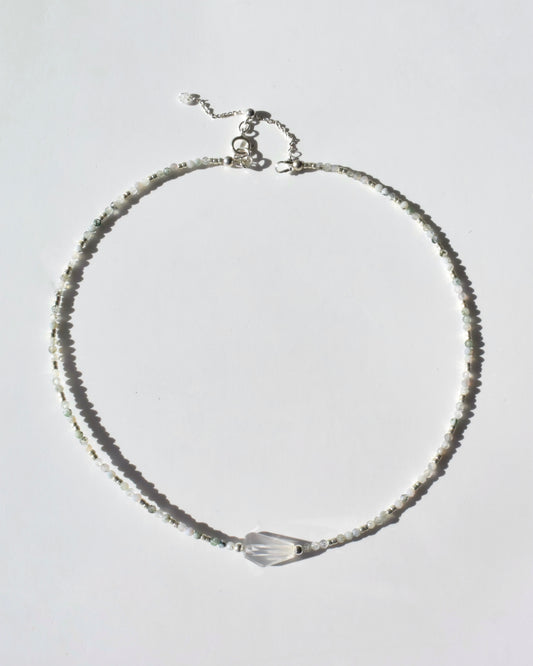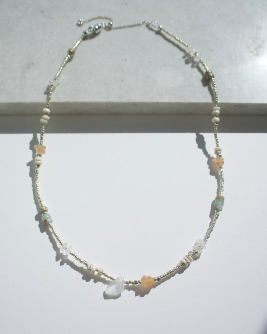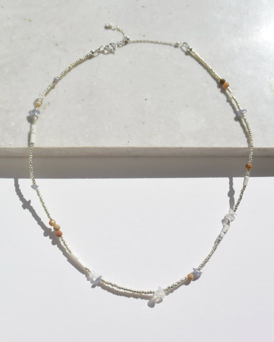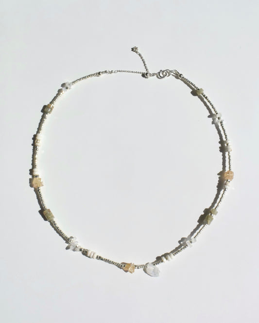 Silver〈Earthing beads necklace〉Moonstone×Topaz×Impression stone