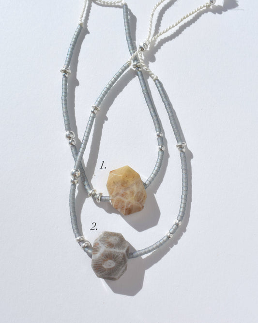 Silver〈Eerthing beads necklace〉Fossil coral×Tanzanite