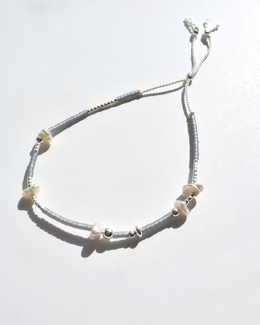 Silver〈Silk cord bracelet〉Fresh water pearl