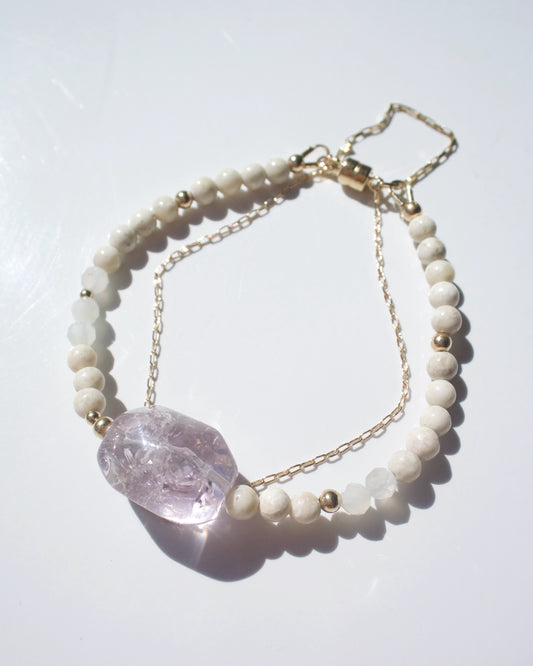 14KGF〈Magnet bracelet〉Ametyst×River stone