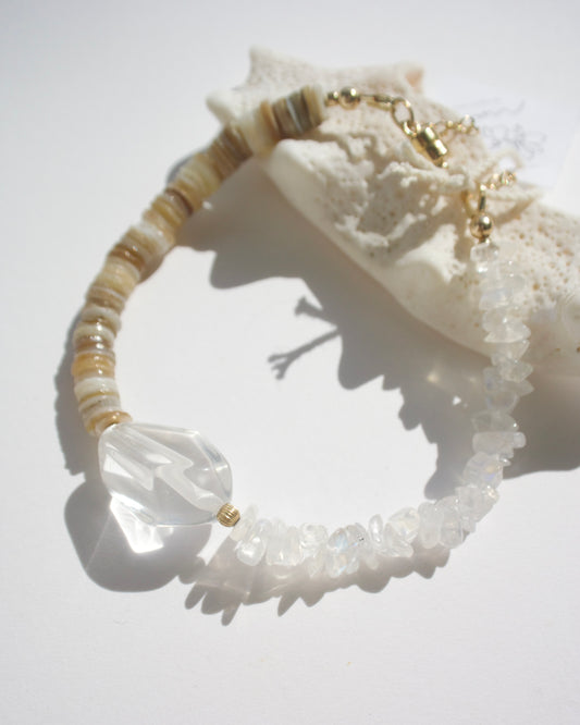 14KGF〈Magnet bracelet〉Crystal quartz×Shell