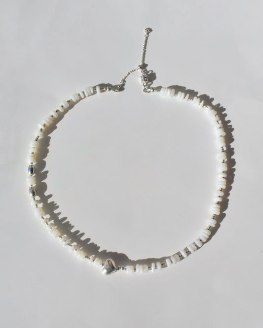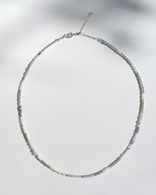Silver〈Earthing beads Necklace〉White opal
