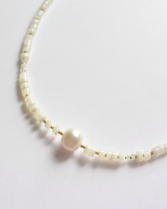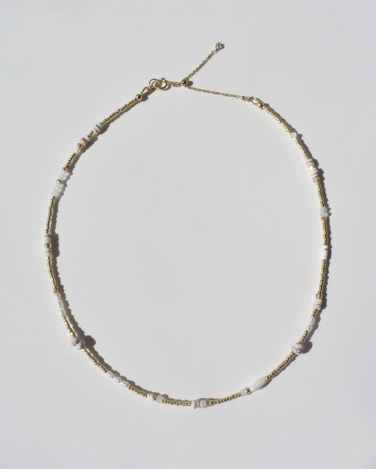 14KGF〈Earthing beads Necklace〉Shell×Pearl×Moonstone