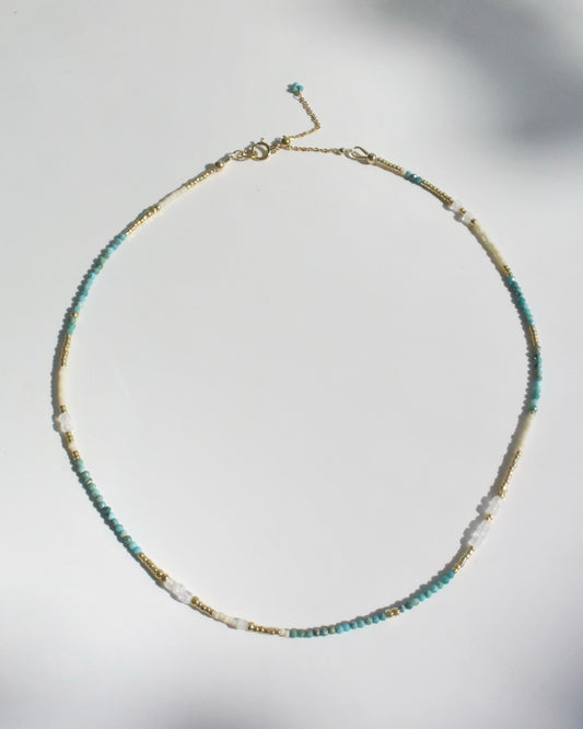 14KGF〈Earthing beads Necklace〉Turquoise×Rainbow moonstone