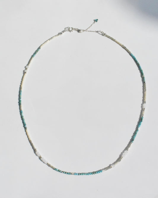 Silver〈Earthing beads Necklace〉Turquoise×Rainbow moonstone