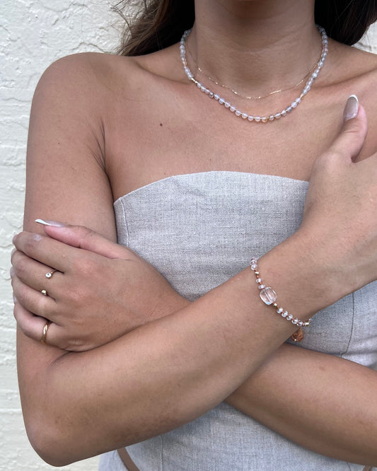 [先行販売プライス]14KGF〈Earthing beads necklace〉Rainbow moonstone