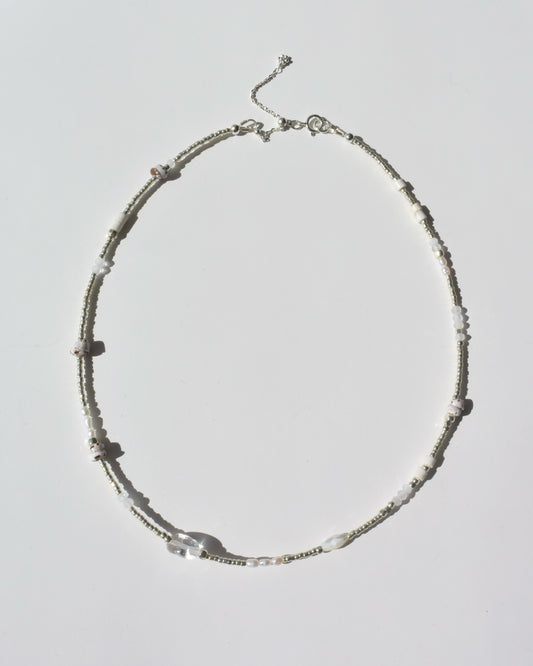 Silver〈Earthing beads Necklace〉Shell×Pearl×Moonstone