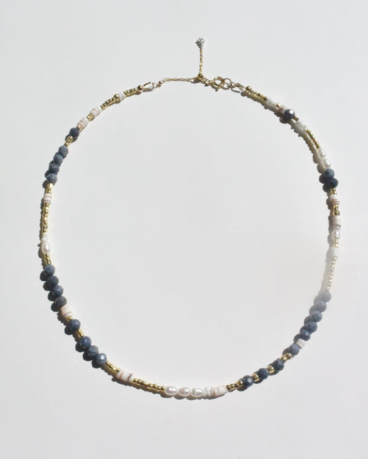 Silver〈Earthing beads necklace〉Moonstone×Topaz×Impression stone