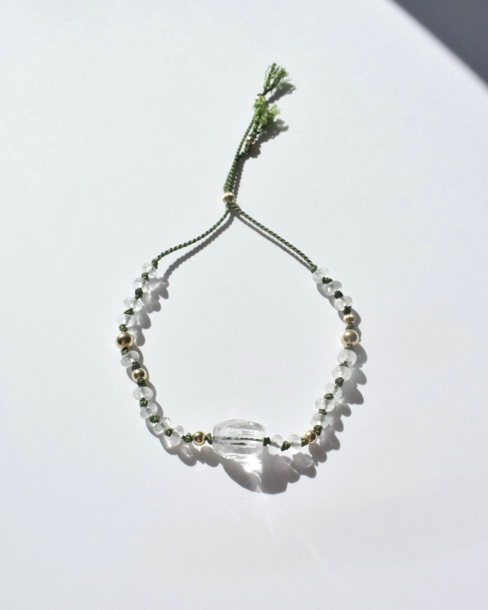 14KGF〈Silk cord bracelet〉Crystal quartz/Moss